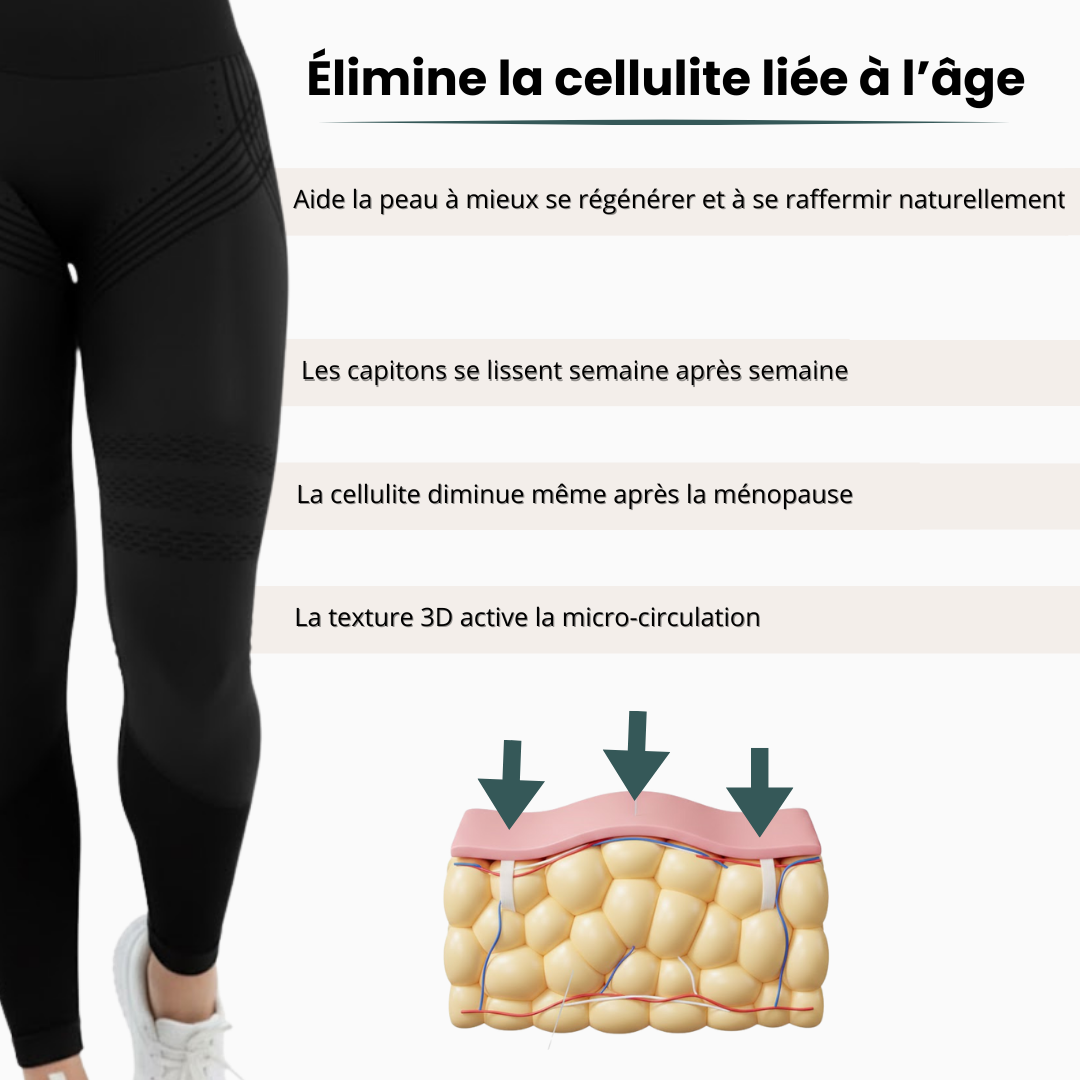 Notre legging utilise une TECHNOLOGIE 3D BREVETÉE qui stimule naturellement votre circulation sanguine et lymphatique pendant que vous le portez.